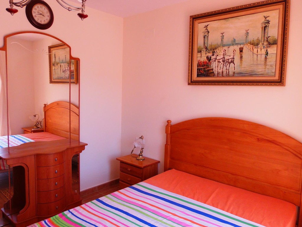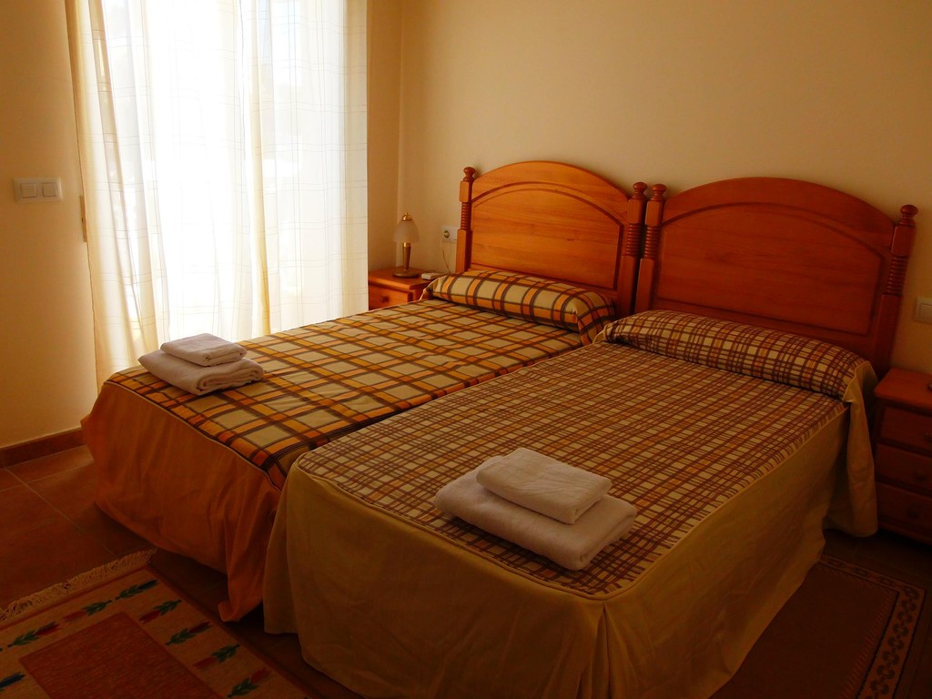 Totalmente amueblado, con una superficie de 100 m2 y capacidad para 4 personas, dispone de 2 habitaciones(uno con doble cama y el otro con dos camas individuales), 1 baño, 1 aseo,salón-comedor con acceso a la terraza privada y una piscina comunitaria,cocina independiente con horno,vitroceramica,microondas,hervidor de agua,lavadora,todo esta bien equipado.2 balcones, terraza con salida a la piscina,planta solarium,aire acondicionado independiente en todas las habitaciones,