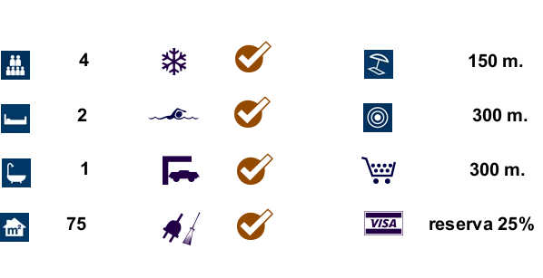 Esta situado en casco urbano y en frente de la mas visitada playa de las marinas"Punta del Raset". Para 4 personas.