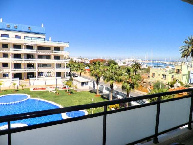 Apartamento de nueva construcción totalmente amueblado en 2º planta, de unos 55 mts con 1 dormitorio, baño completo con hidromasaje, cocina americana, salón comedor, sofá cama, terraza, frigorífico, microondas, lavadora, lavavajillas,cafetera eléctrica, tostadora , plancha, televisión, aire frio-calor y plaza de garaje incluida. La urb cuenta con piscina de adultos y niños, jacuzzi, pista de padel, gimnasio, sauna, jardines y conserjería. Esta situada en la zona del club nautico a unos 250 mts de la playa , del paseo de La Marineta, cerca del puerto deportivo con zonas de ocio , restaurantes y a 700 mts de Denia