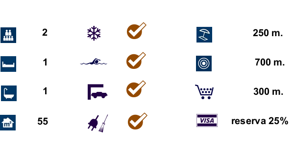 Kвартира, полностью меблированная на 2-ом этаже, около 55 метров с одной спальней, ванной комнатой с джакузи, кухня, гостиная, диван-кровать, балкон, холодильник, микроволновая печь, посудомоечная машина, кофеварка, тостер, утюг, телевизор , кондиционер и гараж. В комплексе есть бассейн для взрослых и детей, джакузи, теннисный корт, тренажерный зал, сауна, сад и услуги консьержа. Он расположен в районе «Club Nautico" примерно в 250 метрах от пляжа, набережной La Marineta, рядом с пристанью для яхт.В 700 метрах от центра города Дения.