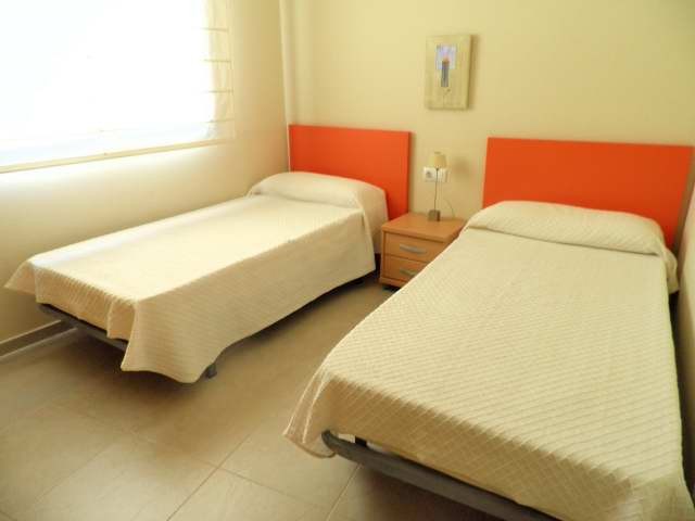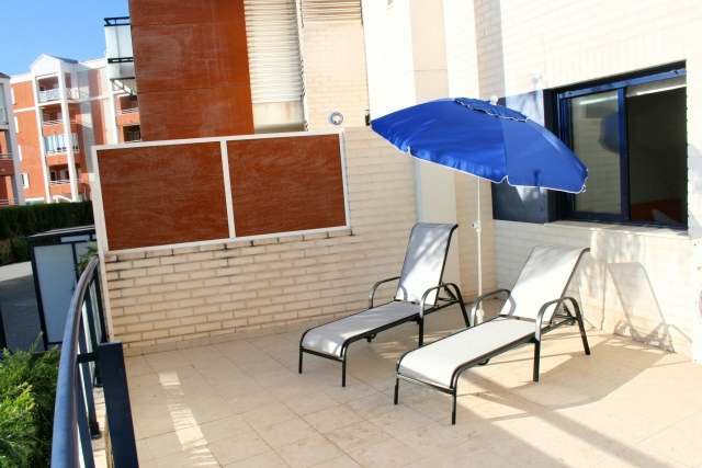Mieszkanie na parterze w pełni umeblowane w nowym budownictwie, około 108 metrów kw., z dwoma sypialniami, łazienka z wanną, wc z prysznicem, kuchnia z pomieszczeniem gospodarczym, salon, sofa, 2 tarasy, lodówka, mikrofalówka, pralka, zmywarka do naczyń, ekspres do kawy, toster, żelazko, TV, gorąca i zimna klimatyzacja. W kompleksie znajduje się basen dla dorosłych i dla dzieci, jacuzzi, kort tenisowy, siłownia, sauna, ogród i recepcja. Znajduje się około 250 metrow od Yacht Club,blisko od plaży, promenady La Marineta, niedaleko przystani jachtowej, restauracji,sklepow i 700 metrów od centrum Denia.