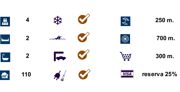 Квартира расположена на первом этаже, полностью меблирована новой конструкции около 108 метров с двумя спальнями, ванной комнатой с ванной, ванная комната с душем, хорошо оборудованная кухня, отдельная комната утилита, гостиная, диван-кровать, 2 балкона, холодильник, микроволновая печь, стиральная машина, посудомоечная машина, кофеварка, тостер, утюг, телевизор, кондиционер.В комплексе есть бассейн для взрослых и детей, джакузи, суд весло теннис, тренажерный зал, сауна, сад и услуги консьержа. Он находится в районе яхт-клуба около 250 метров от пляжа, набережной La Marineta, недалеко от отеля, ресторанов и в 700 метрах от центра города Дения