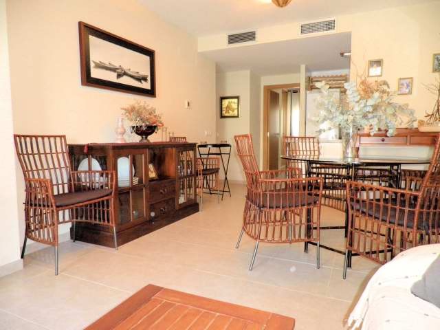 Nowe mieszkanie w pełni wyposażone na 2. piętrze, 55 metrów z jedną sypialnią, łazienka z wanną, kuchnia, pokój dzienny, sofa, balkon, lodówka, mikrofalówka, ekspres do kawy, toster, żelazko, telewizor, gorące i zimne powietrze i miejsce parkingowe wliczone w cenę. W kompleksie znajduje się basen dla dorosłych i dla dzieci, jacuzzi, kort tenisowy, siłownia, sauna, ogród i recepcja. Znajduje się w dzielnicy portowej około 250 metrów od plaży, promenady La Marineta, niedaleko przystani jachtowej i udogodnień. 700 metrów od centrum.