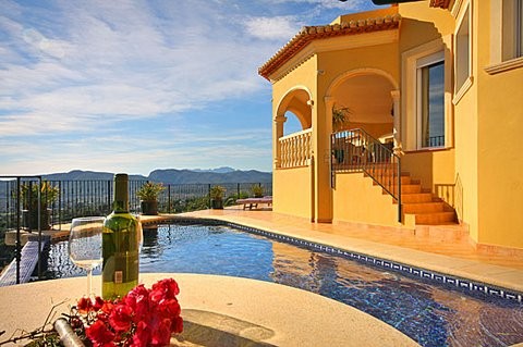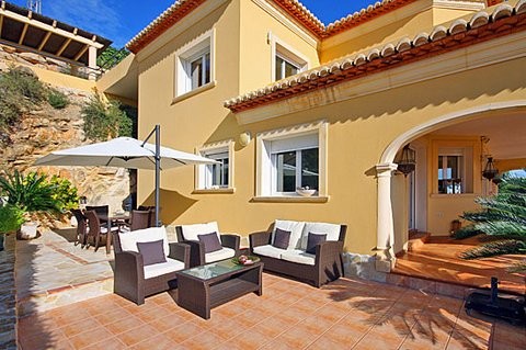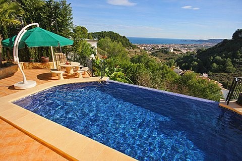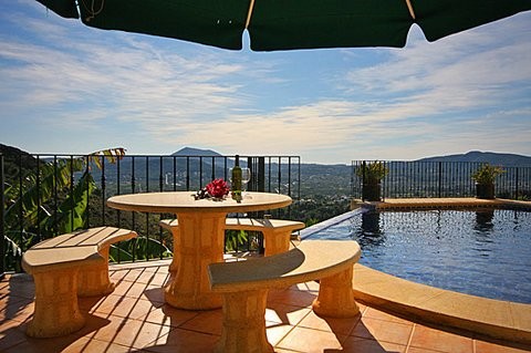Villa de lujo,para 8 personas,con espectaculares vistas a mar,montaña,pueblo de Javea(con buen tiempo se ve la isla de ibiza).Esta situada a los pies del parque natural del montgo.