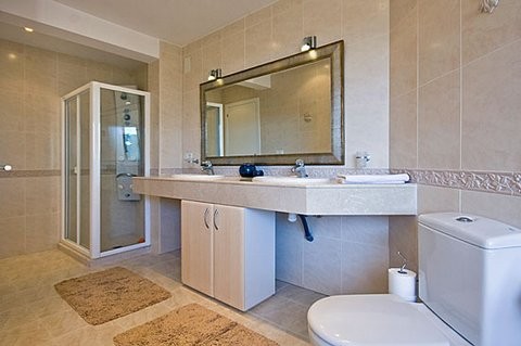 4 спальни, 3 ванные комнаты, большая гостиная, кухня, террасы, бассейн "бесконечные", сад и парковка на три машины. Кондиционирование, отопление полы с подогревом, телевизор, спутниковое телевидение,