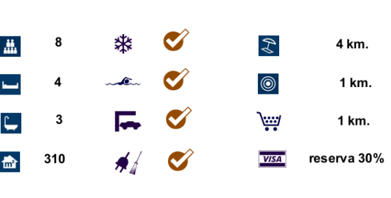 4 bedrooms, 3 bathrooms, large living room, kitchen, terraces, pool endless type, garden and parking for three cars. Air conditioning, heating underfloor heating, tv, satellite channels, internet,