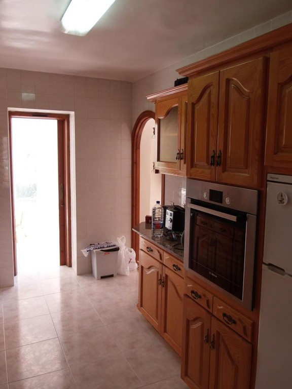 En exterior ademas de gran piscina,al lado barbacoa con terraza cubierta tenemos jardin con palmeras y arbustos,parque infantil y garaje cubierto para 2 vehiculos.
