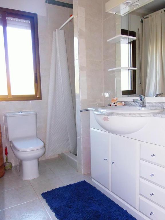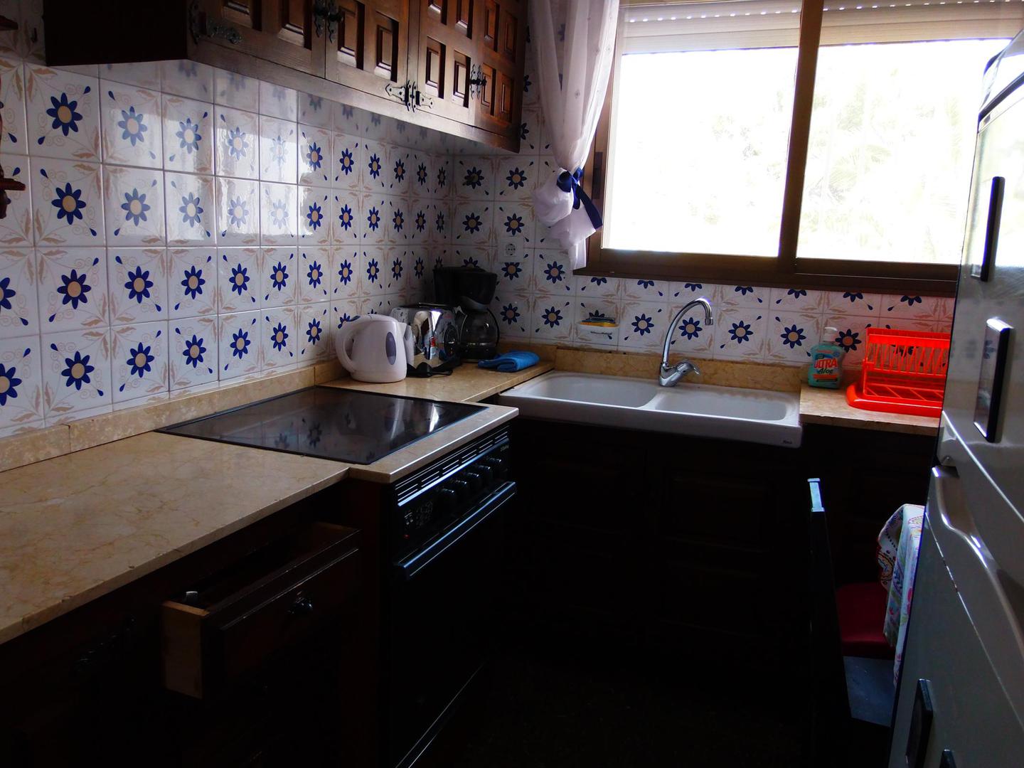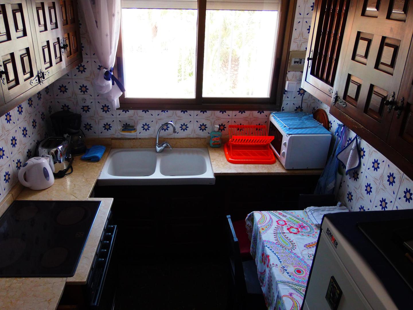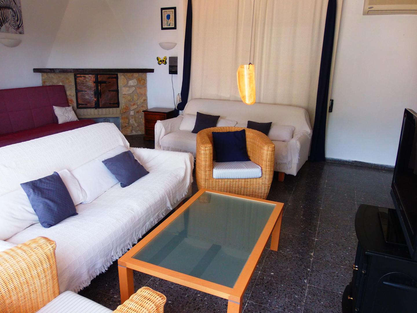 Tiene 3 dormitorios. Uno dormitorio con cama doble de matrimonio y otro dormitorio con cama extensible para dos personas.Los dormitorios y un cuarto de baño completo esta en la planta principal. En la misma planta tenemos una cocina independiente con microondas,horno,vitroceramica,nevera,tostadora. Salon con sofas,television,aire acondicionado. Un comedor en terraza acristalada.
